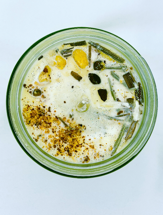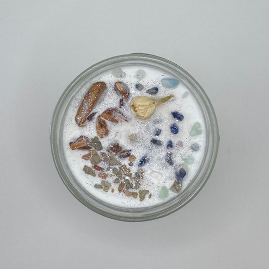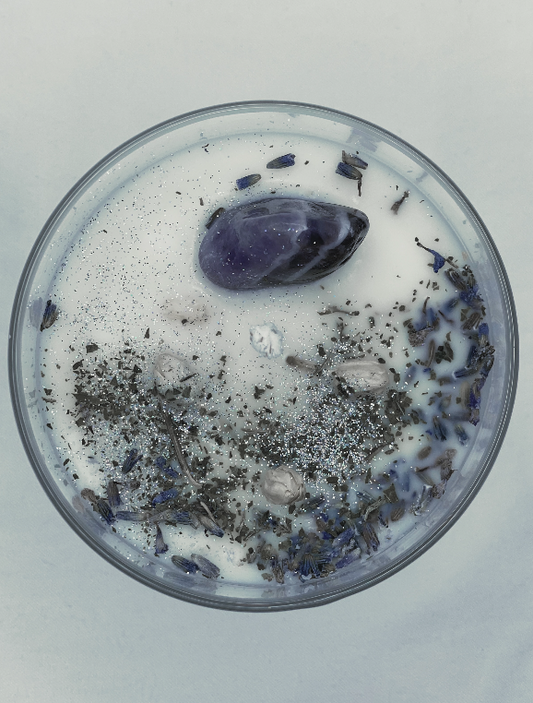 Hand-poured soy candles infused with crystals, herbs, and intention. Each candle is crafted to support your rituals, manifestation practice, and spiritual journey.